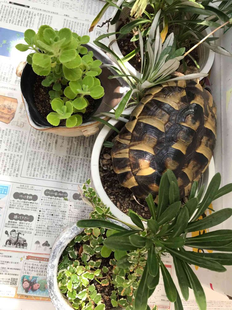 うちのかめこは今日、お庭を散歩中、いなくなってさあ大変(((;꒪ꈊ꒪;))):
