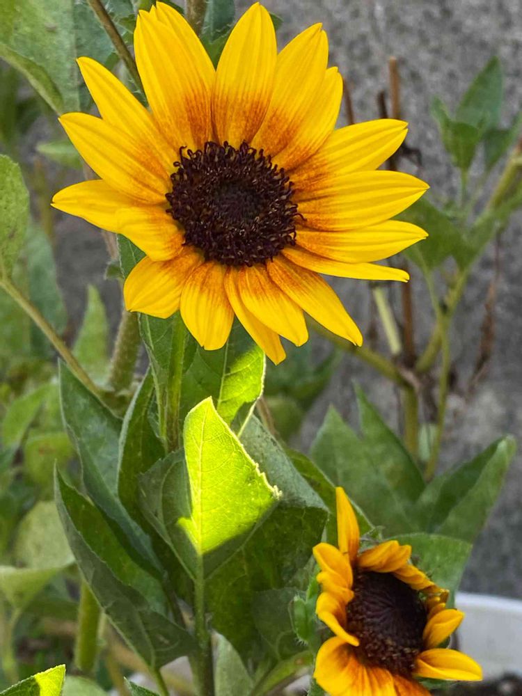 軒下に置いてたら、1株だけ無事でした!越冬ひまわり🌻なんて、初めてですよ♪😁