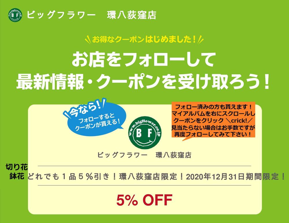 ビックフラワー環八荻窪店で使えるお得なクーポン配信しています!