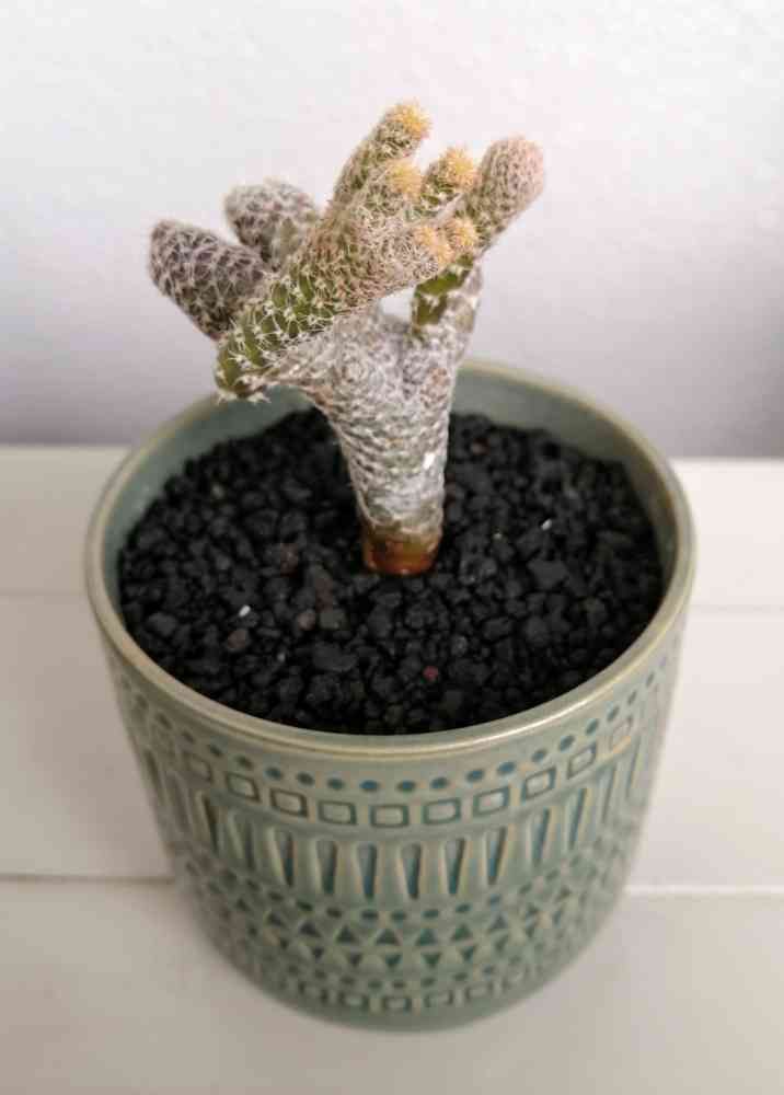 前に投稿した時から手みたいな株でしたが、小指(?)のほうと掌のところから子株ができています🌵🖐