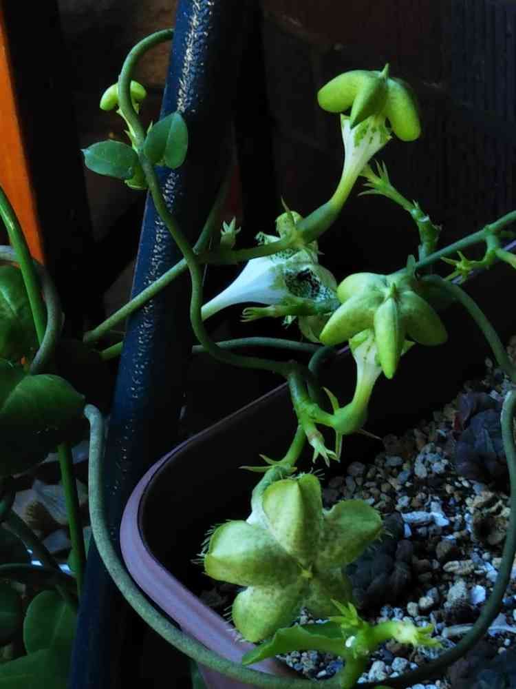 彼方此方に蔓を伸ばして 不思議なお花さんを咲かせます😺