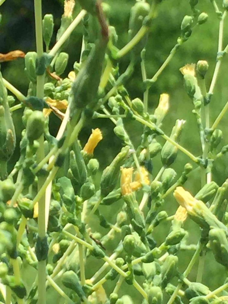 サラダ菜を取り終わったあと放置していました。黄色の小さな花🌼が咲きました。これ以上は開かない様です。