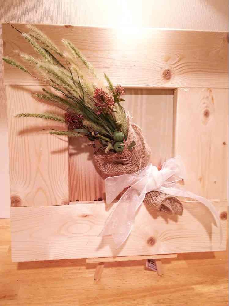 昨日、一昨日と猫じゃらしや野に咲く草花を摘んで😊丈の長い物はスワッグに。短い物はブーケにして、以前作った額とコラボ🎵🎶