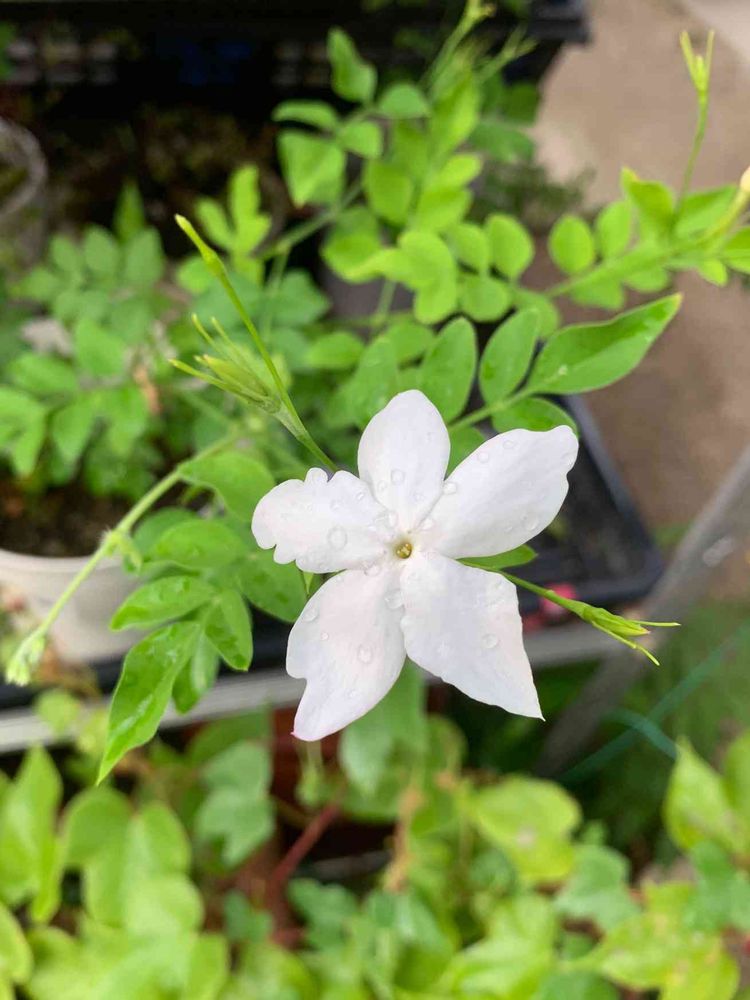 親友からジャスミン🌱ってひと枝もらって、挿し木にしたら咲きました。