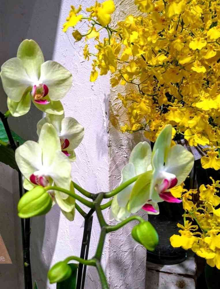 緑色のミニ胡蝶蘭とオンシジウムの花、素敵です✨✨