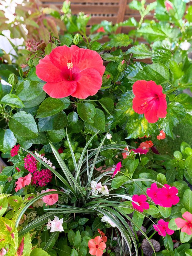 赤いハイビスカスの花が小ぶりに…追肥しなくちゃ😅