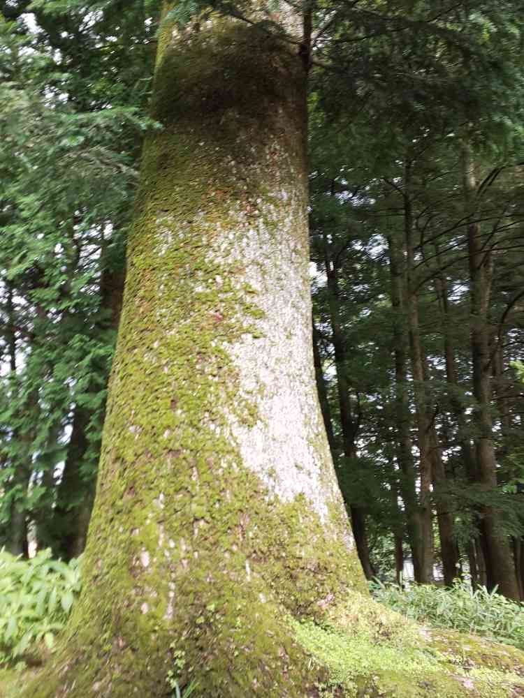 根元が苔むしている立派なもみの木✨クリスマスツリーにしたら素晴らしいかも✨⛄️🎄✨