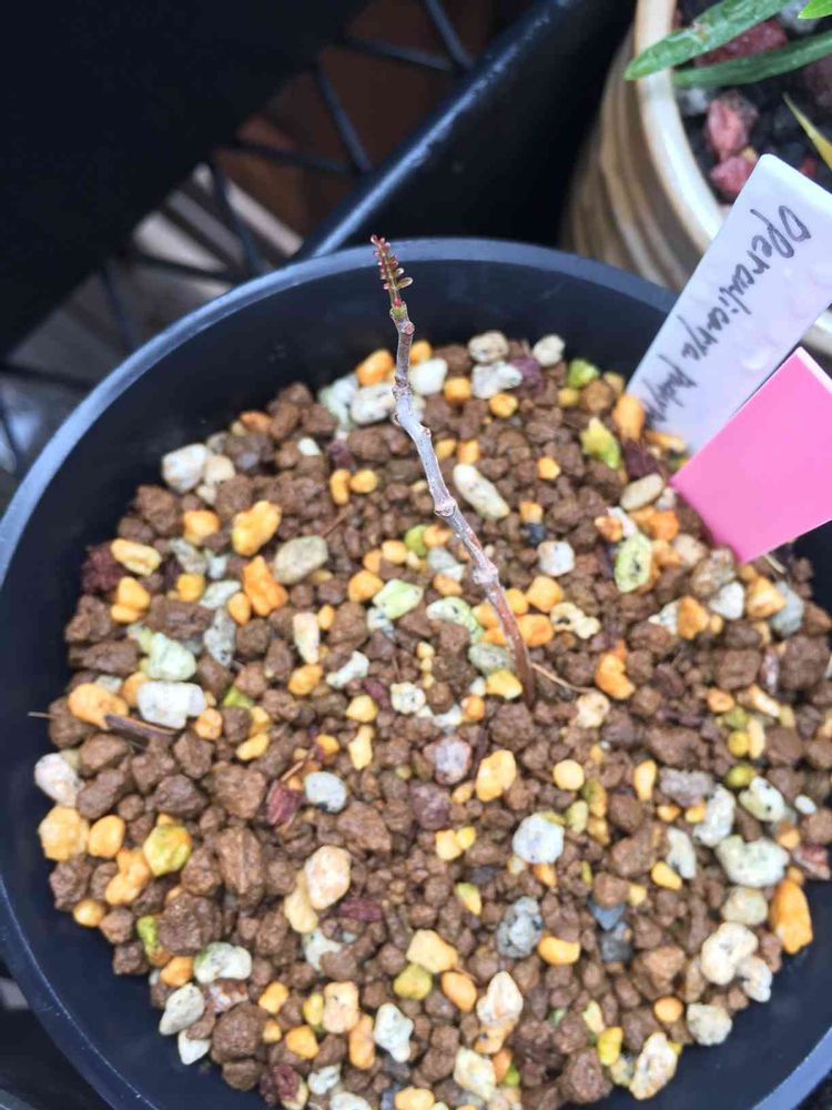 もう半ば諦めていたパキプスですが、2/3ほど胴切りしてメネデールに24時間つけて埋めといたら新芽が出てきました!