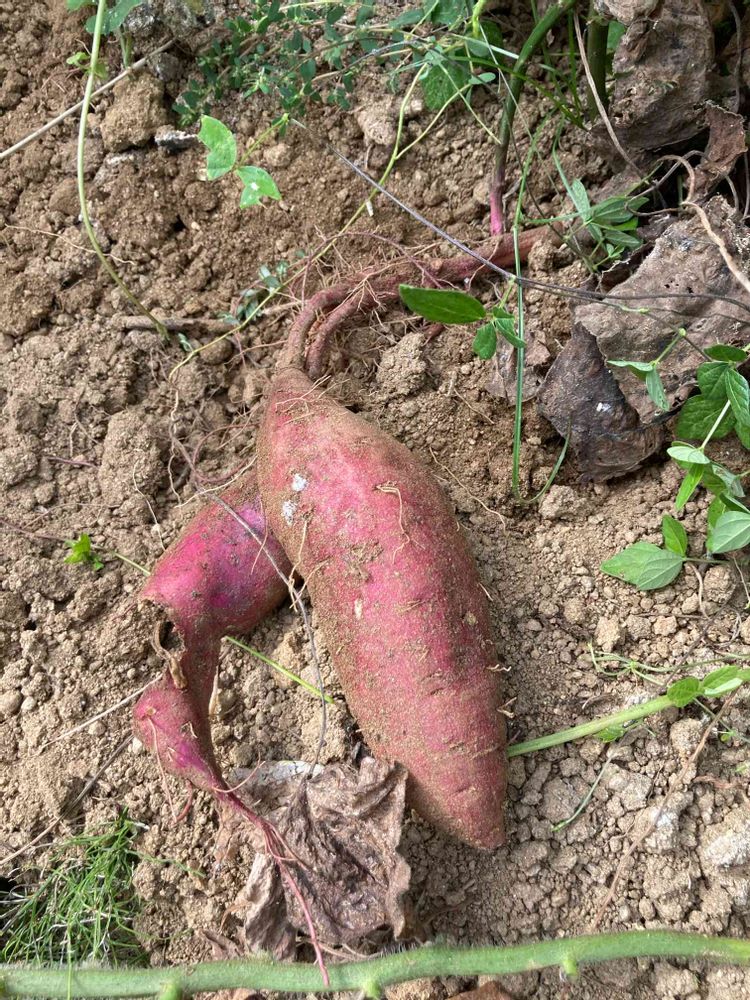 猪除けでビニールハウス内で育てていたサツマイモ'シルクスイート'を本日家族で収穫。久しぶりのイモ堀で楽しかった♪ 初めて耕した土地であり、シルクスイートの美味しさもあってか、大きなイモは高確率でモグラ(?)の害を受けてました...来年こそ頑張るぞう☆