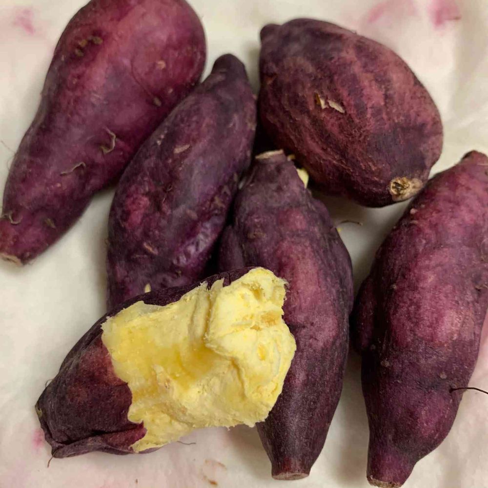 今夜は、サツマイモをぬらしたリードペーパーで包み片面4分ひっくり返して4分電子レンジでチン🎶しました😊簡単焼き芋🍠