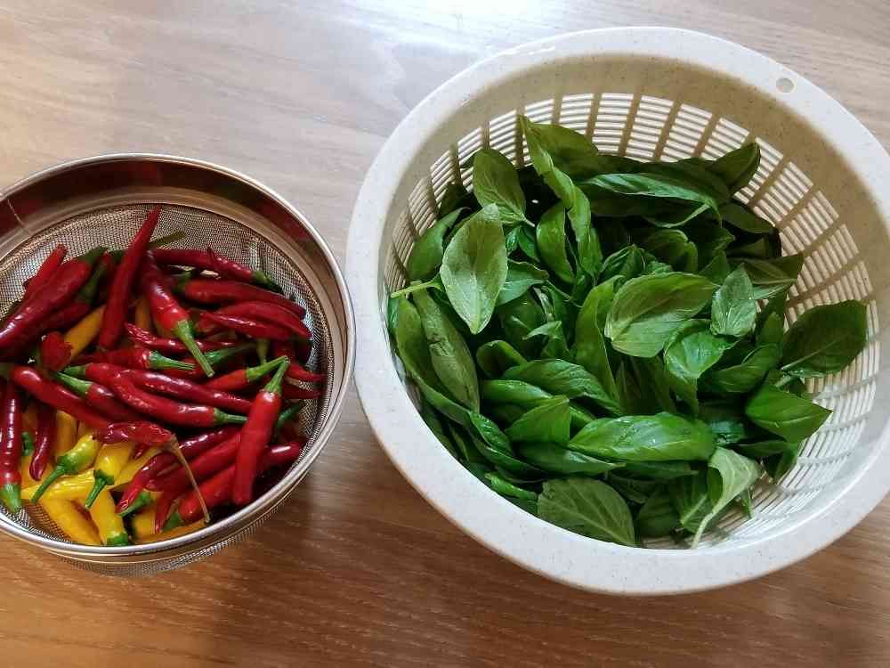 今日はバジルと鷹の爪と黄金唐辛子の収穫をしました😊