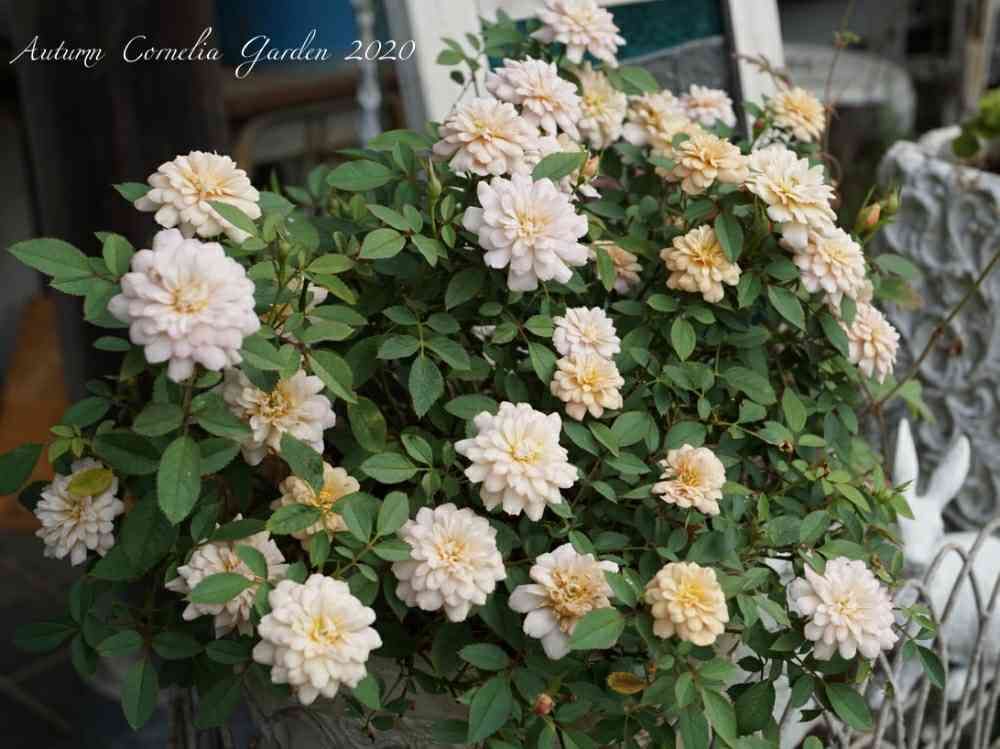 小さなグリーンアイが可愛いミニバラのモカが、もりもり咲いてくました♡ॢ*‧˚