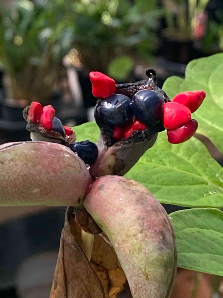 秋に実が熟すと結実しない赤色と結実した黒色の種子ができる、