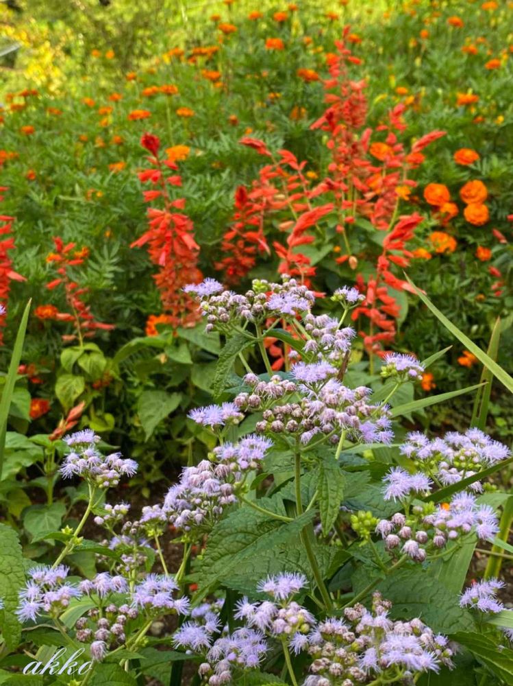 周りに零れ種からの黄花コスモスに囲まれてます❣️💙