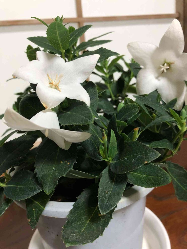 しーちゃんさん、おはようございます😃☁️☔☁️台風の、風🌀が、まだ、時折強く吹いてます❗しーちゃんの、方は、雨☔なのね❗気を付けていてくださいね🎵。白い、桔梗が、綺麗ですね✨造花みたいに、花びらが、しっかりしてますね✨いいね!ですね✨✌👋👋💕。