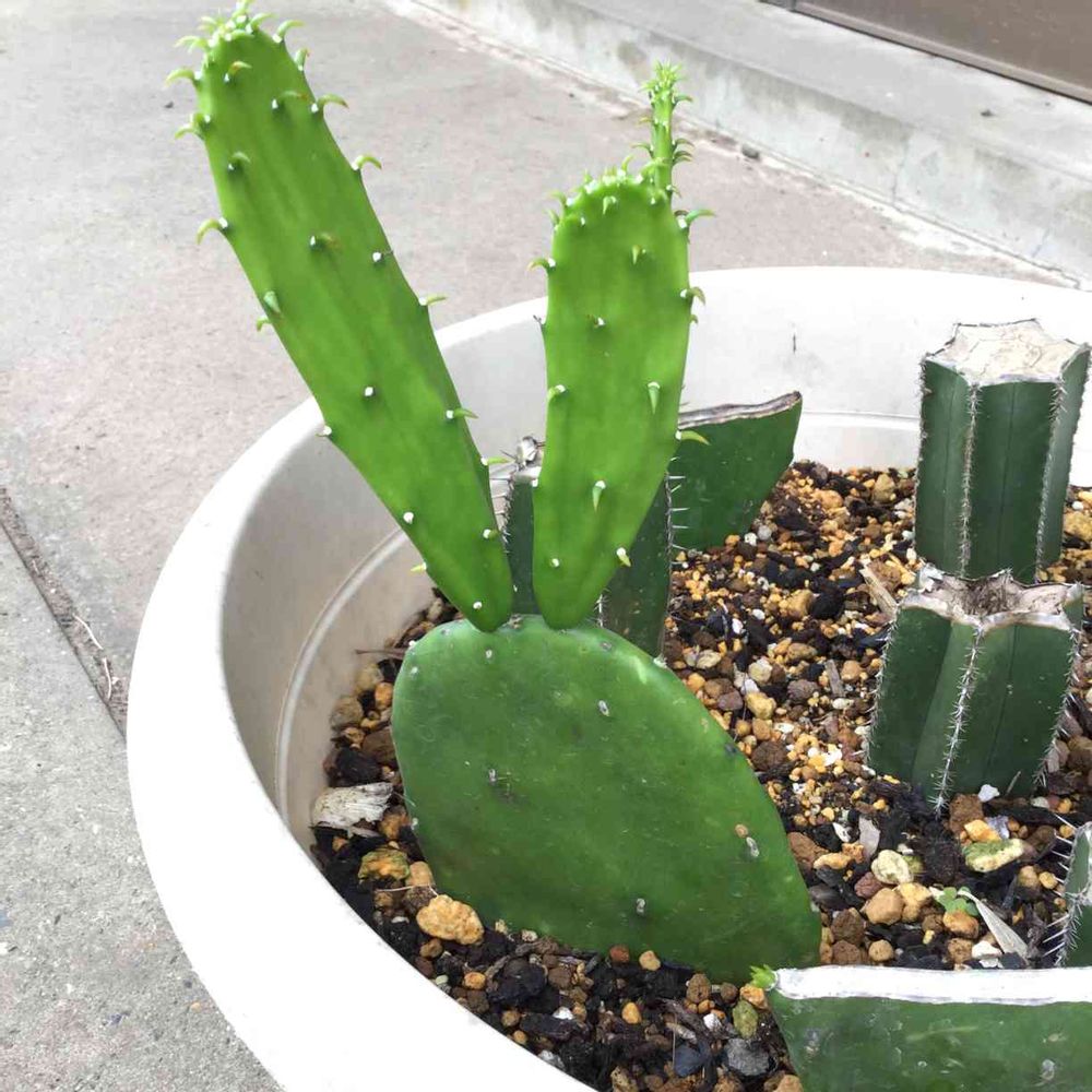 食用ノパルを通販したときに挿木用にと、芽が出かけてる大きめのを入れてくれたんですが、それから2か月ほどでこんなに育ってくれました!