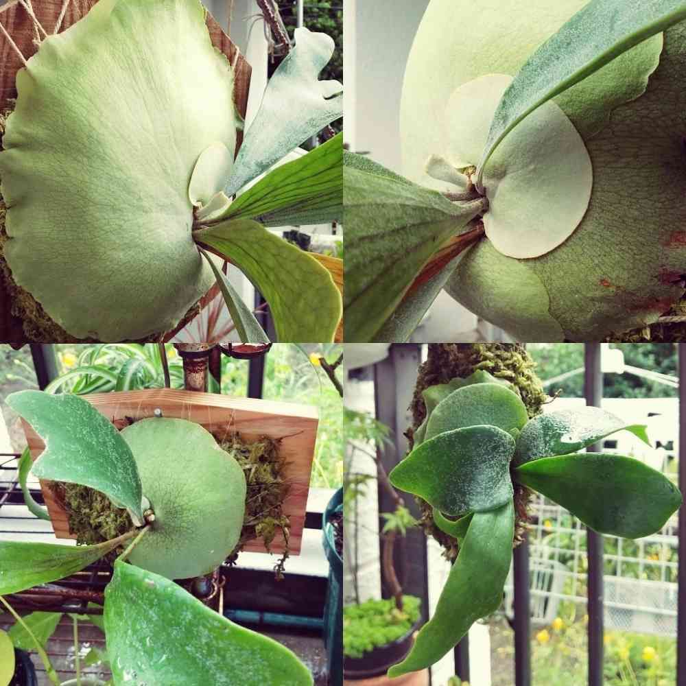 初めて買ったのは苔玉仕立て(上二枚は1株の左右)だったのですが、半年くらい経って貯水葉を挟んで真逆から胞子葉出てるのの可笑しくね((゚□゚;))⁉️