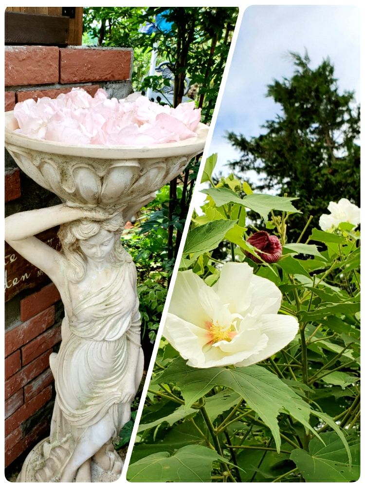 酔芙蓉大きな木になってしまったので剪定してお花を先日のビーナス像に浮かべてみました😁💕