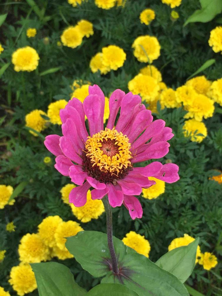 色が可愛いくて。マリーゴールドの黄色の中でピンクが映えていました♪