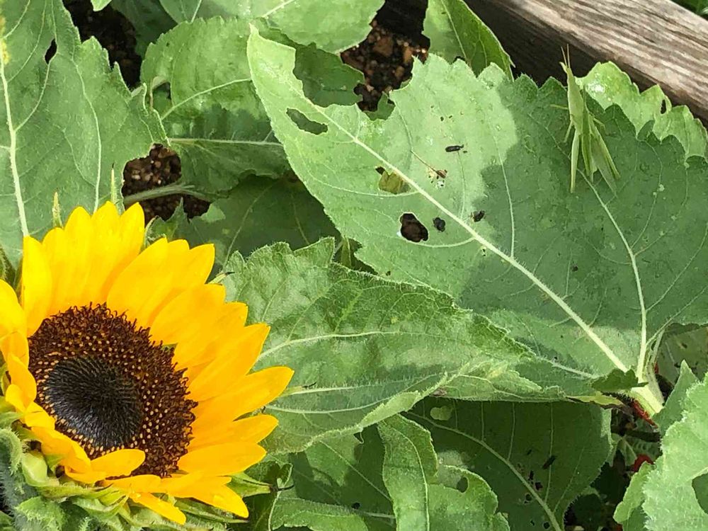 あ〜ァ‼️ヒマワリの葉っぱに穴あけましたね😠