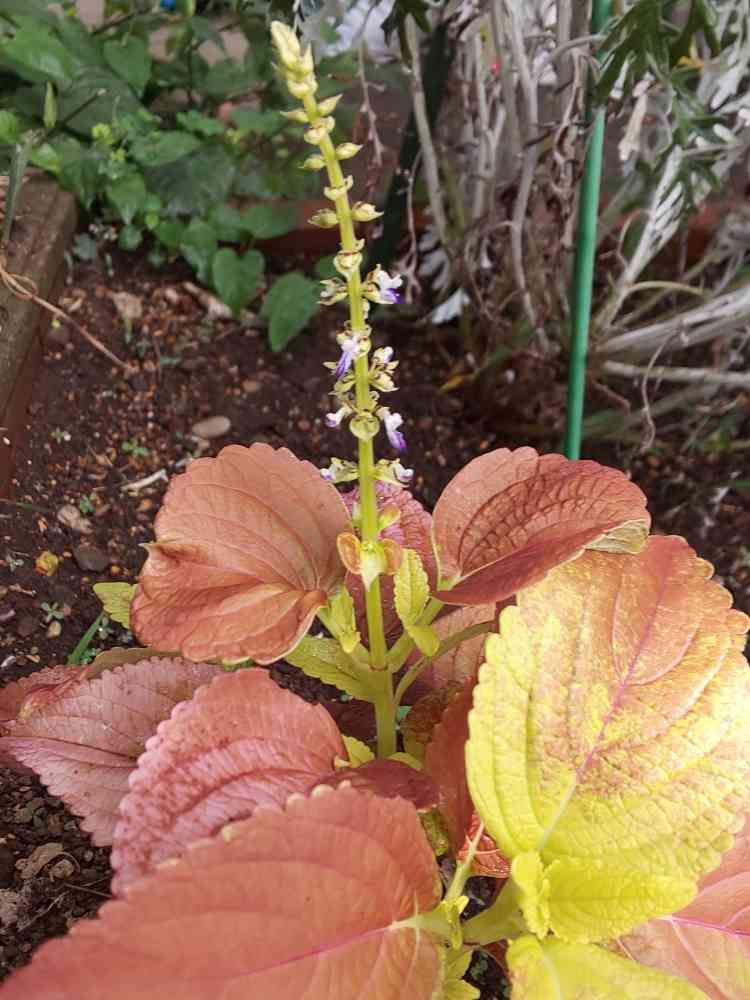 紅葉🍁した様な色に変色してきたコリウスに可愛い薄紫の花💜✨