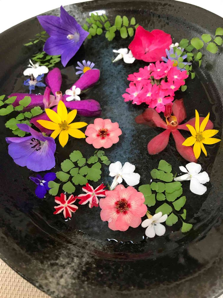 庭の花を集めただけだけど、皿が頑張ってくれた感じ💪🏻