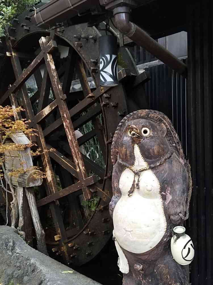 信楽の焼き物? ずいぶん細目のタヌキですね。八畳敷ありますか? 😎💦
