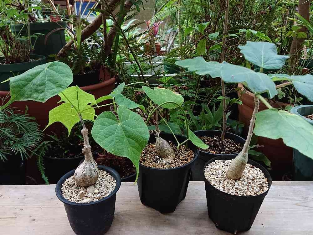 アオイ科は245属4000種以上、双子葉植物。フィルミナア属は全16種、アジア大陸の温帯から熱帯地域に分布。栽培は容易で強健。あまり大きすぎない鉢に植え、限られたスペースの中で強制的にコーデックス化させるのがよい。