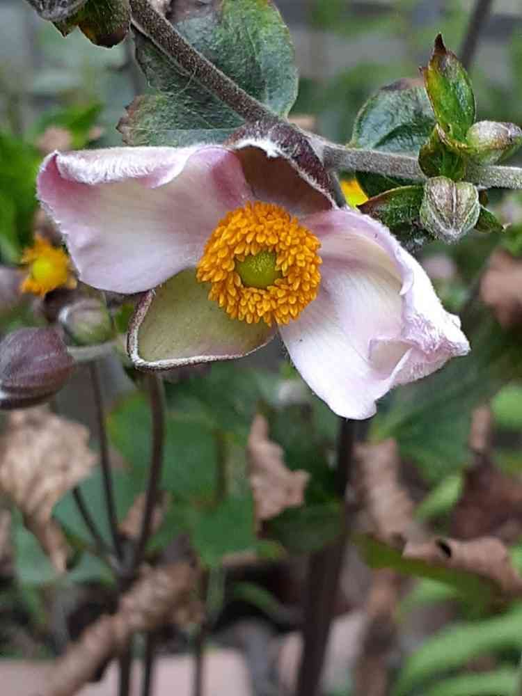 秋明菊が咲きましたが、花弁の数も少なく、何だか寂しげ