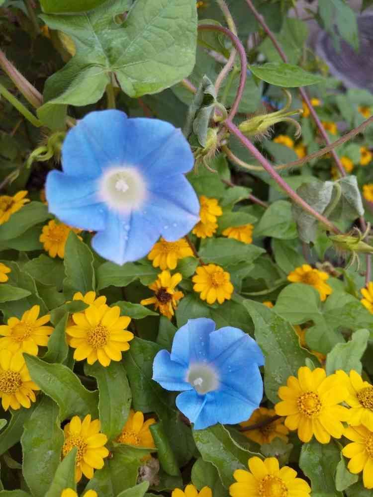 朝顔、まだまだ元気に咲いてくれて嬉しいですね💙 メランちゃんはミニミニ🌻みたいで可愛いっ💛 🌀後も元気に咲いてくれて嬉しいね😍