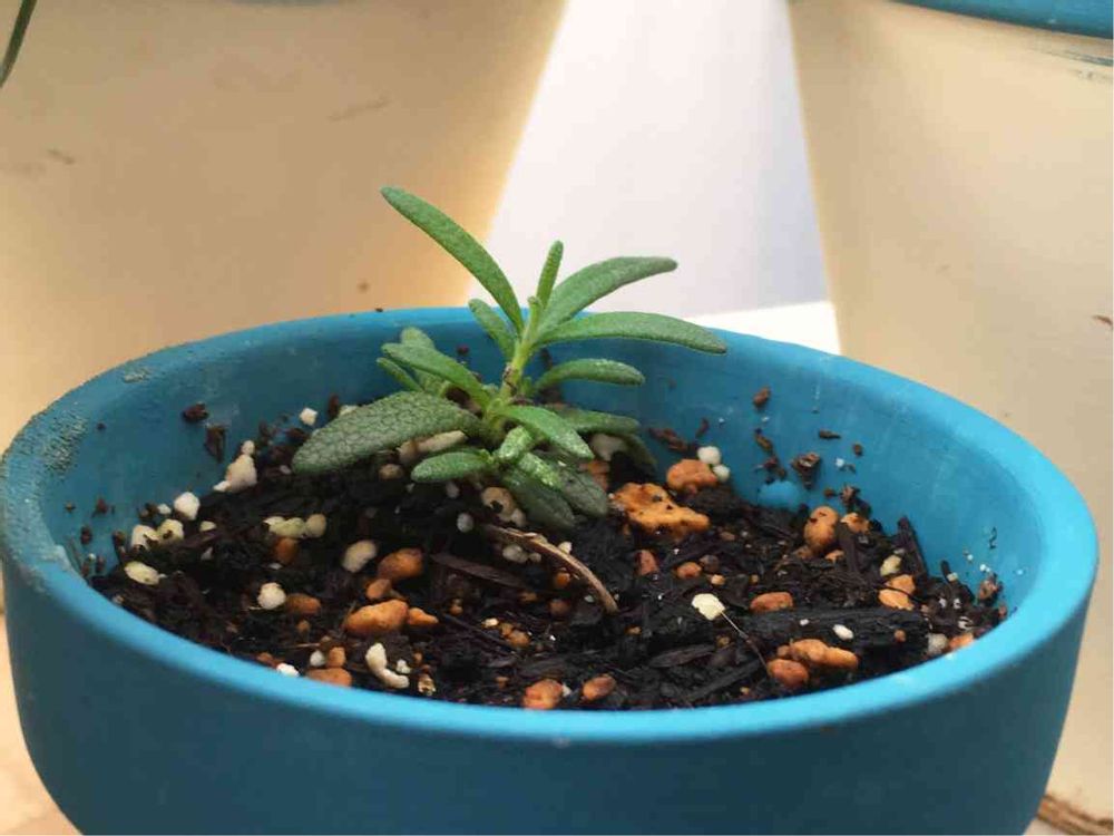 種から育てているローズマリーです。GWに種まきして、まだ背丈2cm程度です。