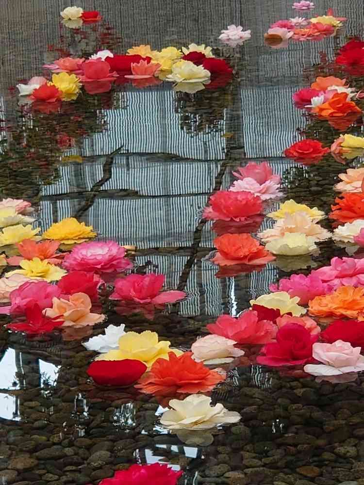 池の水が、流れるプールのように循環していて、浮かべられたベゴニアがくるくる回っていました💫