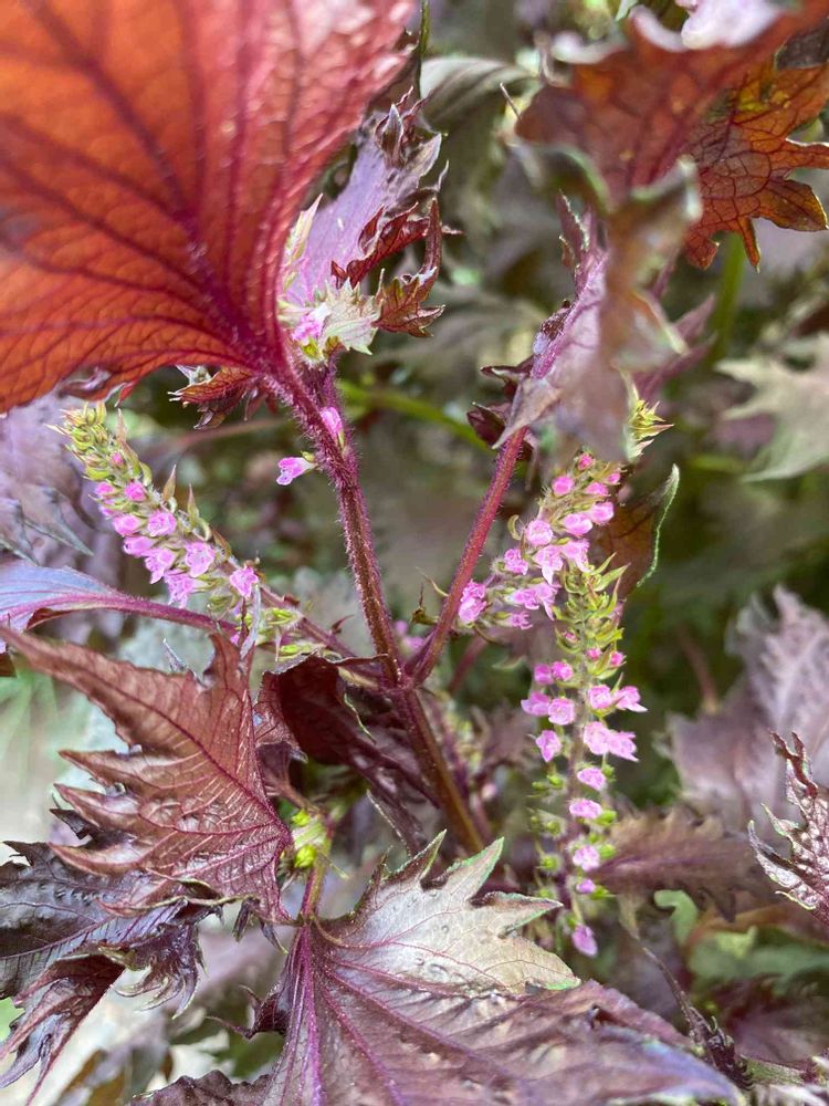 三箇所目にある赤紫蘇で、日陰のせいか葉の色が鮮やかな気がするします。