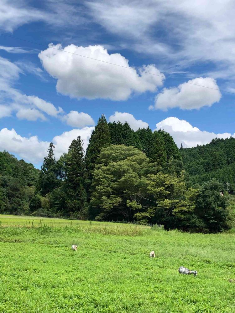 青空と白い雲と草の色がとても綺麗です✨ファミマの色だね😄