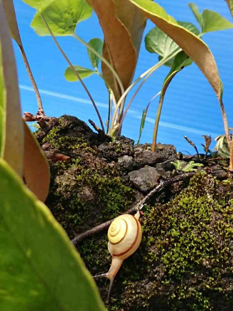 🐌は産まれたばかりのようで殻の大きさは1センチ位なんですよ😃