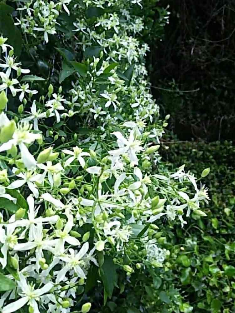 裏山からセンニンソウがフェンスに絡まって咲いてます