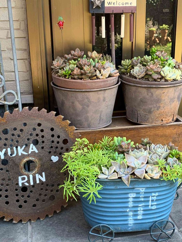 始まりは知り合いの方に頂いたたった1つの多肉植物からでした!それがいつの間にか庭中、様々な種類の多肉植物でいっぱいに💕 様々な器で寄せ植えしたりして楽しんでいます🍀 今は、友達の影響でドライフラワーにも夢中です🥰 家の中では農家をしていた夫の実家から出てきた古い農機具や昔の家具などをリメイクし自分で描いたトールペイントやパッチワークなどと共に飾りインテリアを楽しんでいます☺️