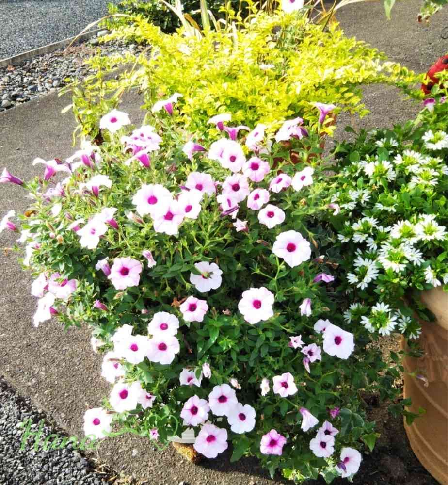 バイカラーのペチュニア、大株に育ちましたね💖