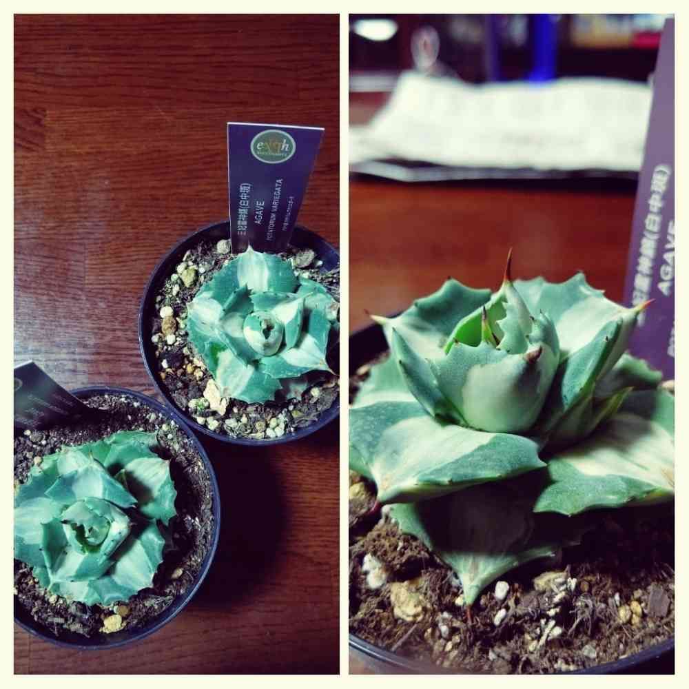 小さな庭,アガベ 王妃雷神錦(白中班),多肉棚の投稿画像