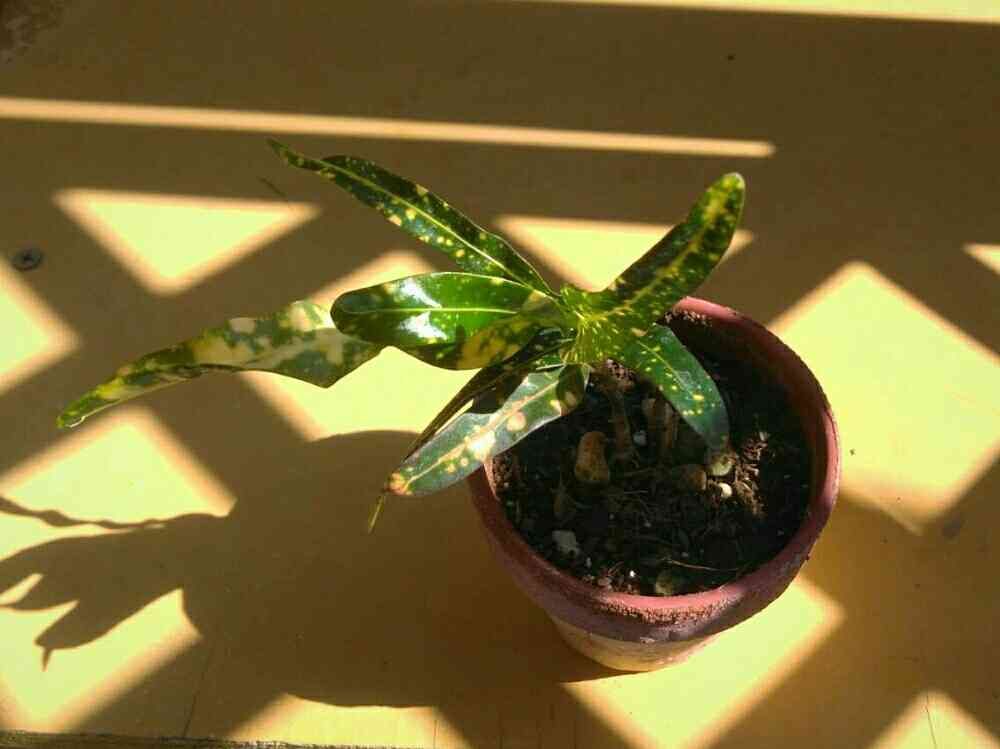 元々は、水耕栽培で売られていたのを土に植え替えて育てていましたが、黄色い斑が入ったクロトンと同様に枯れそうになりましたが、なんとか数枚の葉を付けるまでになりました😊