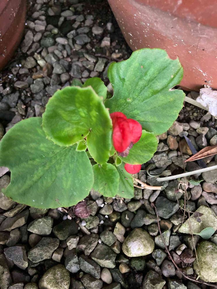 今日の花、ベゴニア零れ種からの発芽、砂利の間からど根性🙆♀️