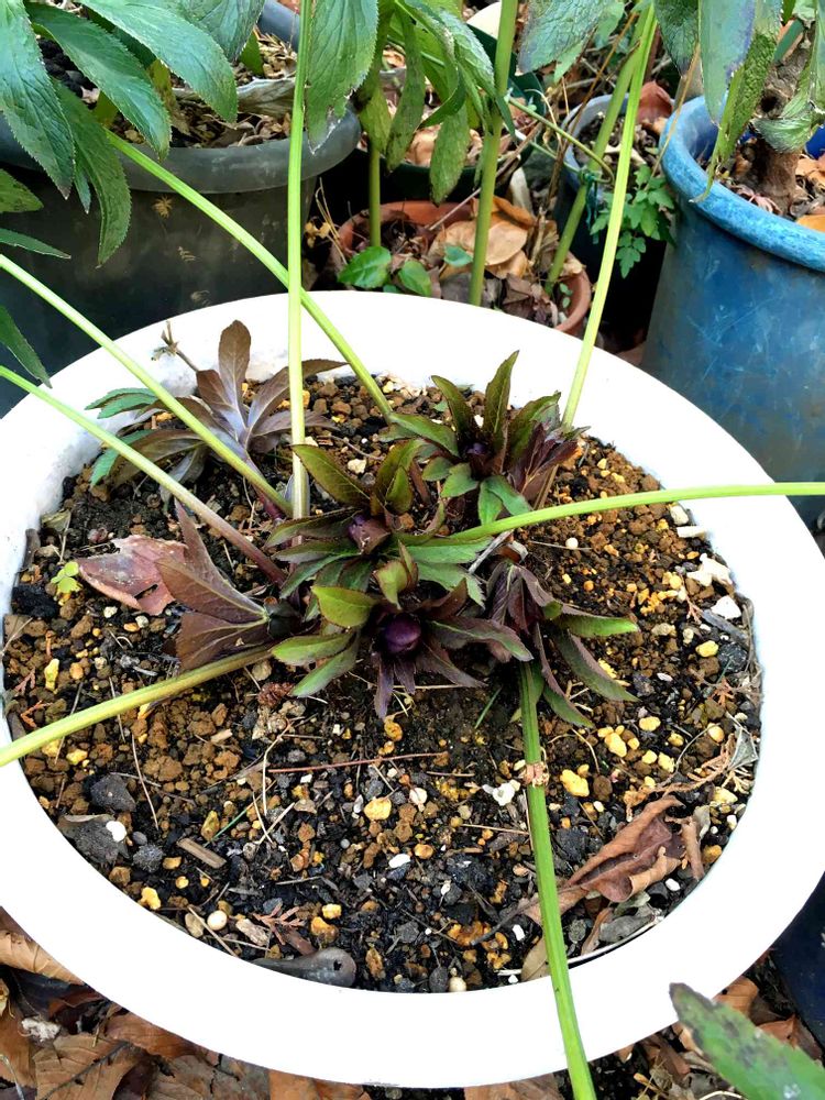 現在のヘレボルスです。蕾が上から横向きになってきています。