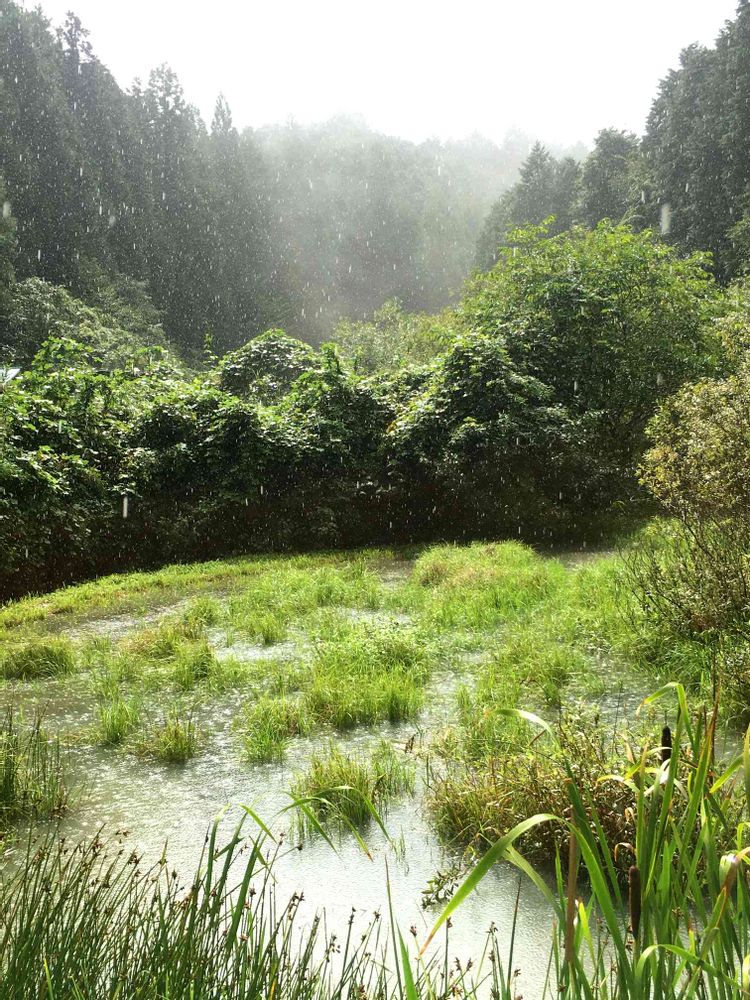 この日は時々豪雨で、いつもと違うちょっと面白い風景が見られました🌟(林が水浸しになって北海道の湿原のようになってました)