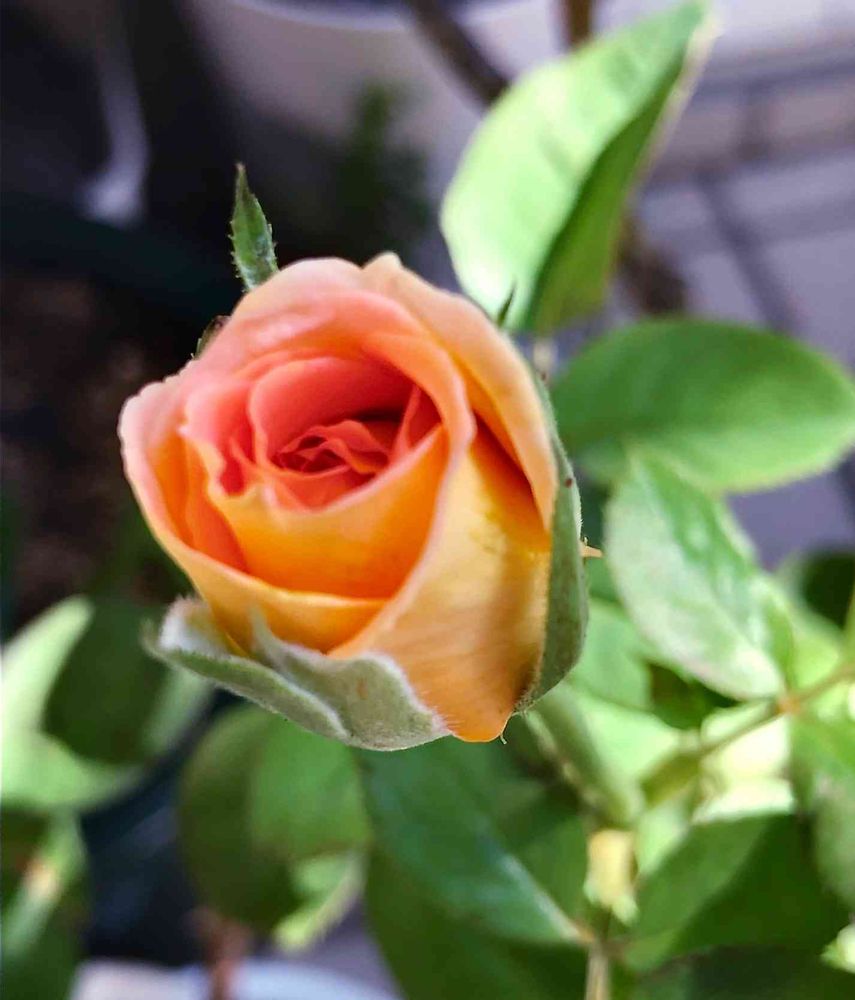季節に拠り 濃淡の変化はありますが、落ち着いたアプリコット系オレンジ🍊で、〜8cm中輪 四季咲きのバラです🌹