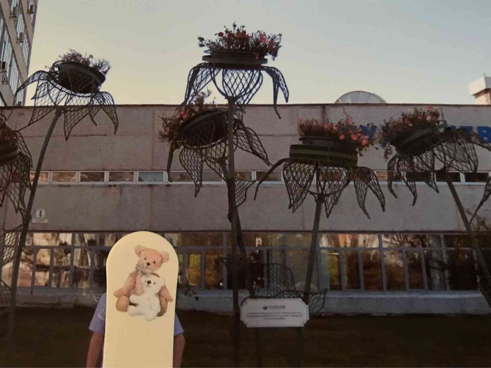 ひまわりのオブジェにお花が植えてあって可愛かった❤️