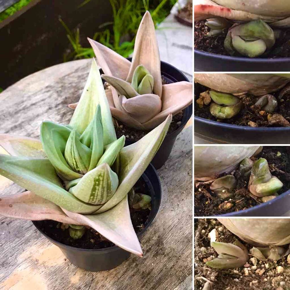 親は(正確な情報かはわかりませんが)ゴニアロエ属千代田錦とガステリア属リトルワーティーらしく、それぞれの形質がうまいこと顕れてるなあ〜という見た目です👀