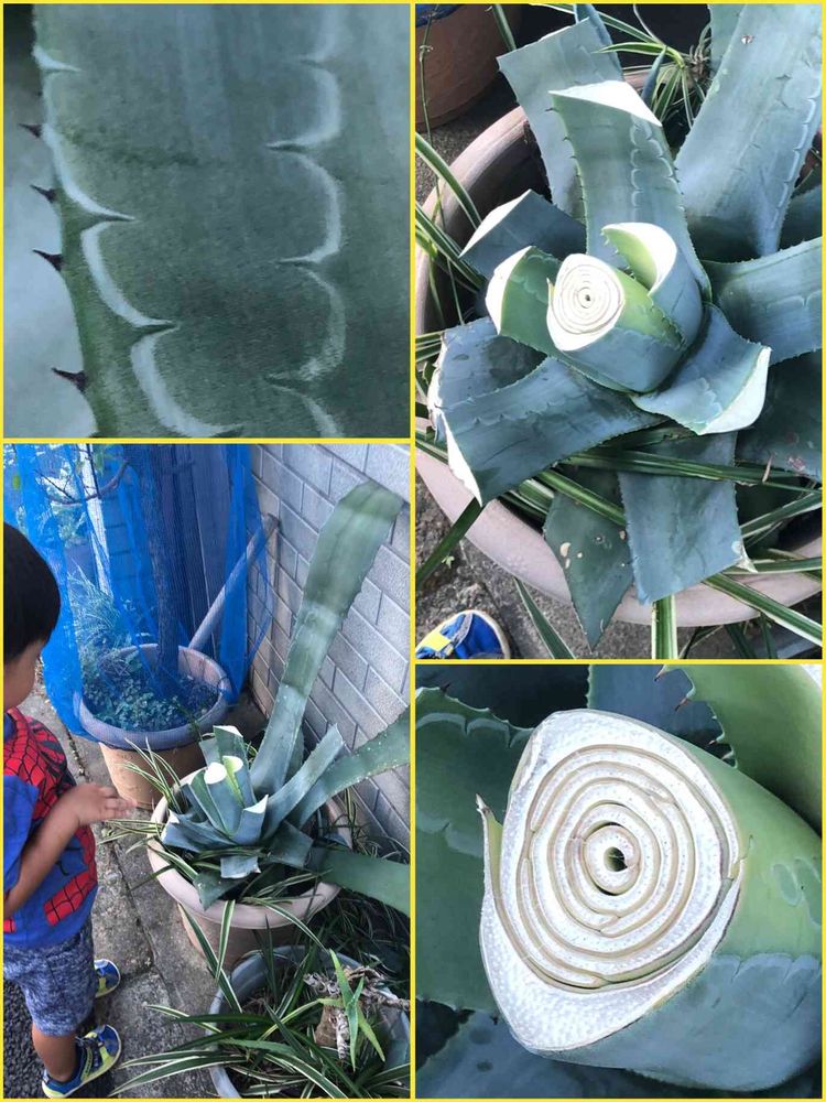 本当は一枚一枚が大きくて固くて葉っぱの周りに鋭いトゲがあって伸び伸びしているはずなのですが歩道際に置いてあるので危険なんですよね😢