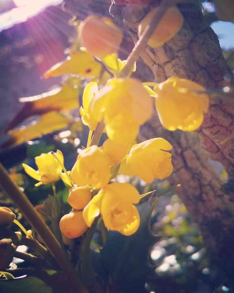 このお花は、多分、ヒイラギナンテンではないかと思います。