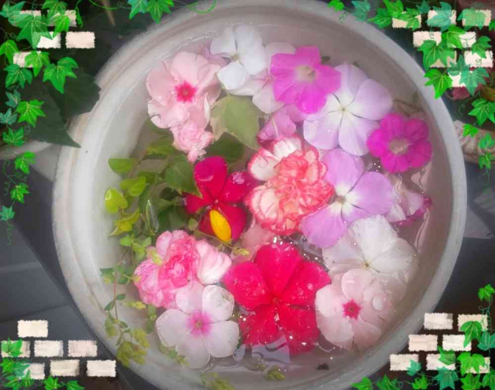 落花した花や切り戻しの花を使ったフローティングフラワーにハマってます🌼✾🌼✾🌼