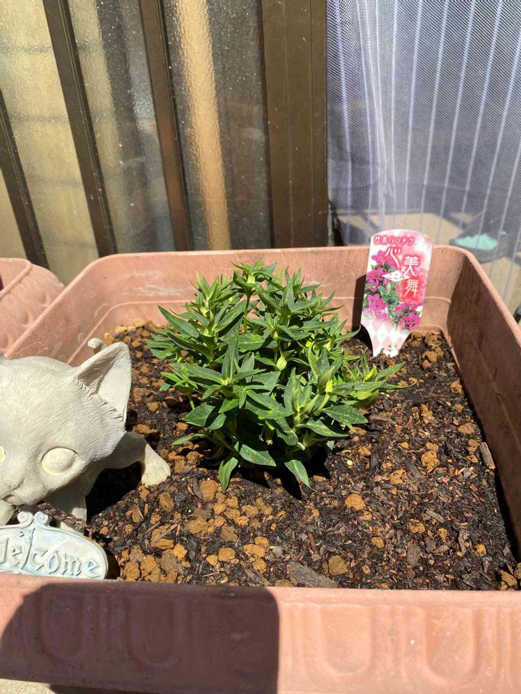 いまは小振りな苗ですが結構大きくなるみたいです。このプランターを覆うくらいに